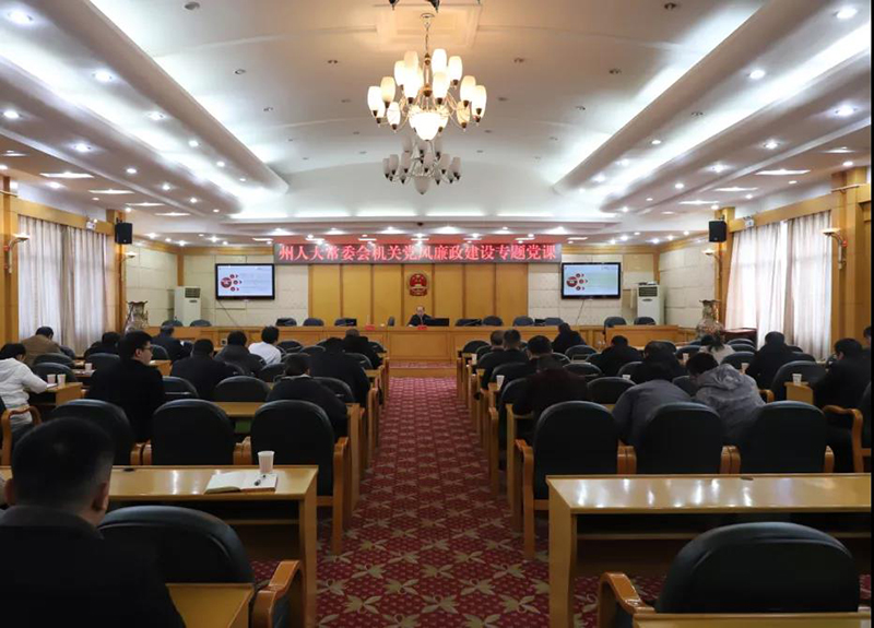 ▲近日,州人大常委会机关举行党风廉政建设专题党课报告会,州人大常委会党组成员、机关党组书记、秘书长文武斌出席会议并授课。(全小辉 摄)