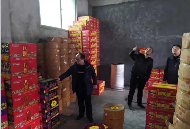 ▲近日,吉首市乾州街道办事处主任杨秀明带队到该街道辖区内三岔坪村等地,检查烟花爆竹零售店安全生产等情况,严防安全事故发生。(骆丛云 摄)