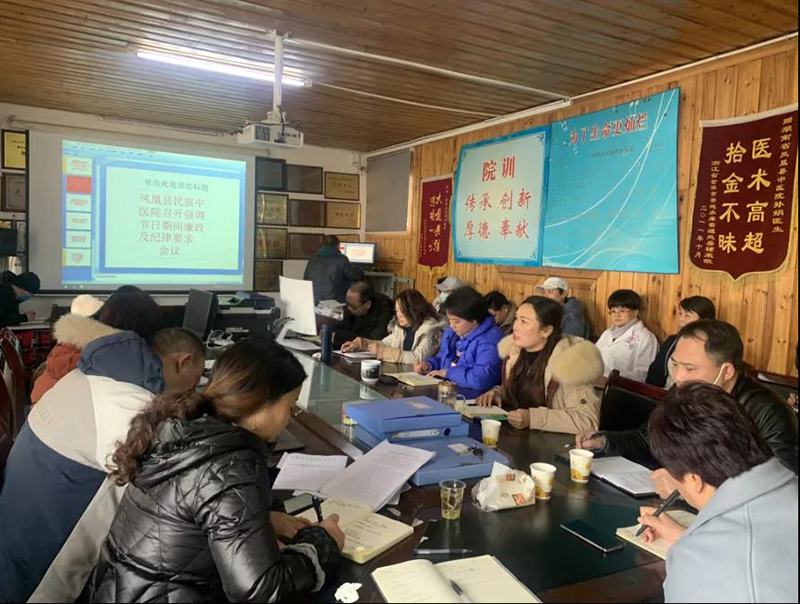 ▲近日,凤凰县民族中医院党组组织召开廉政工作专题会议,要求全体干部职工进一步增强纪律意识,做到清廉过节。(杨芳 摄)